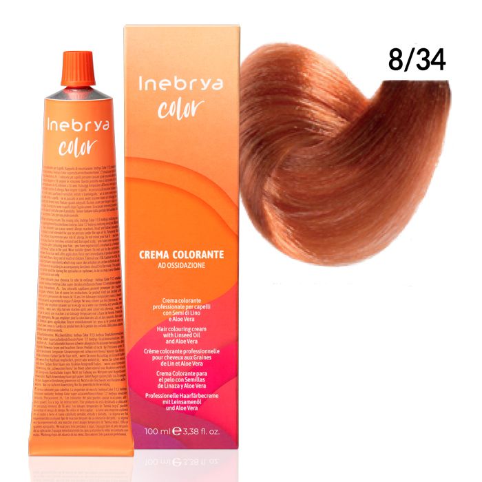 Inebrya 8/34 Golden Copper Light Blonde Professional Permanent Color 100ml